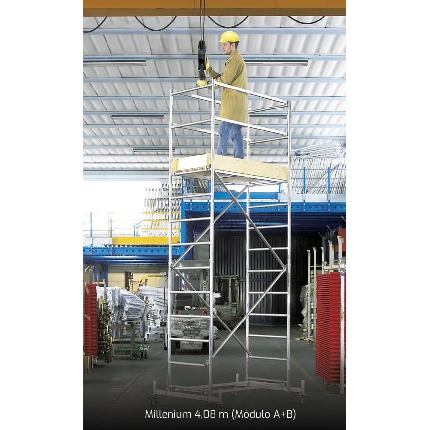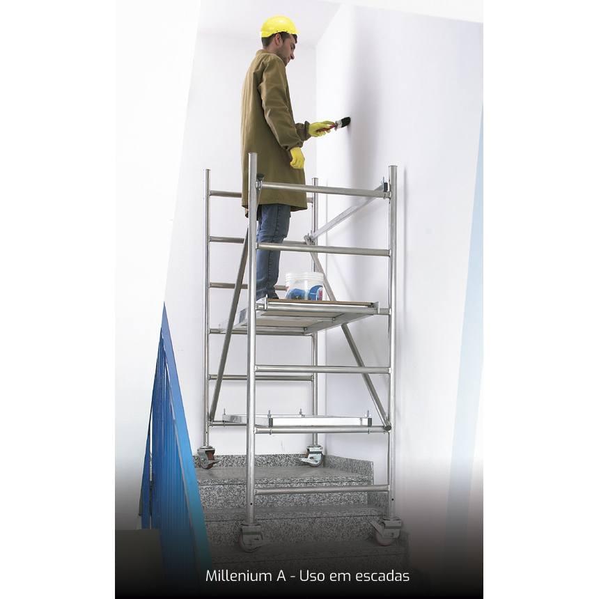 MÓDULO B: 2 marcos terminais (5 degraus), 2 base adicionais de 1.70m, 2 diagonais, 2 corrimões horizontais, 1 kit de rodapés, 4 estabilizadores;